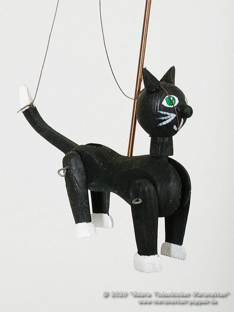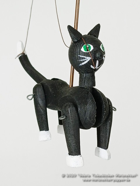 Kocour dřevěná klasická loutka marioneta na drátě.