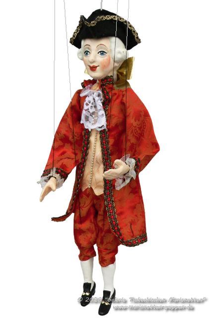 Komponista Mozart Amadeus originální česká loutka marioneta s niťovým vedením rukou a vahadlem.