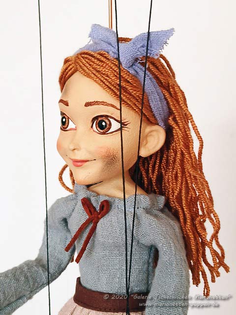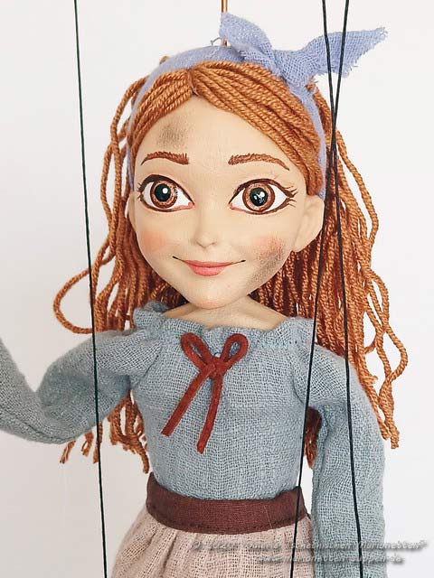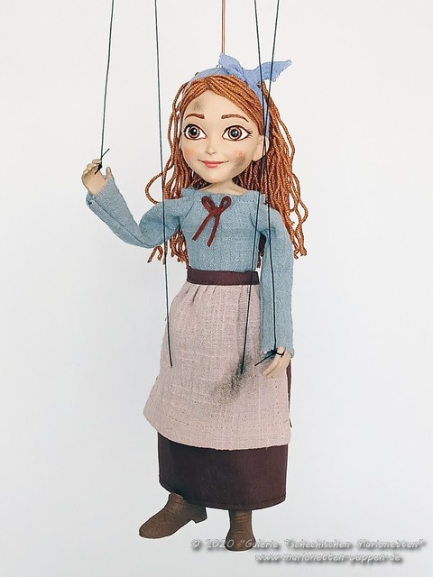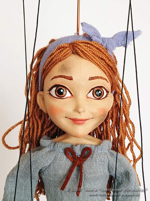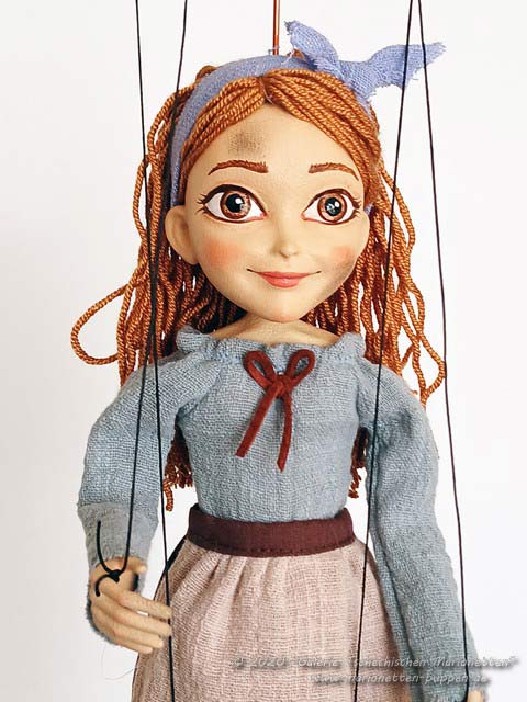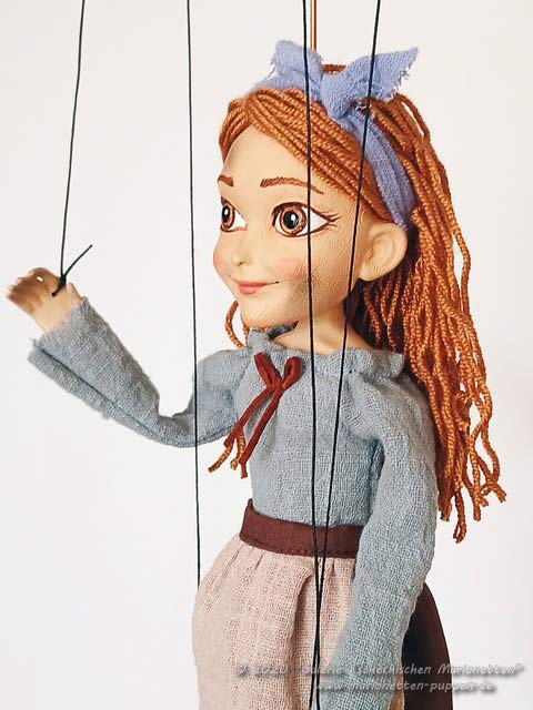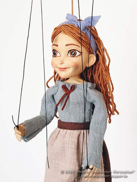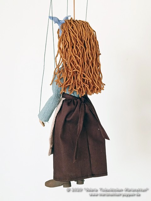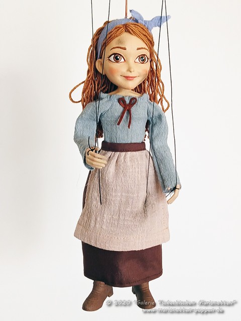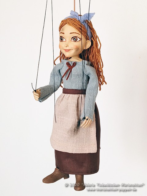 Popelka originální česká loutka marioneta s niťovým vedením rukou a vahadlem.