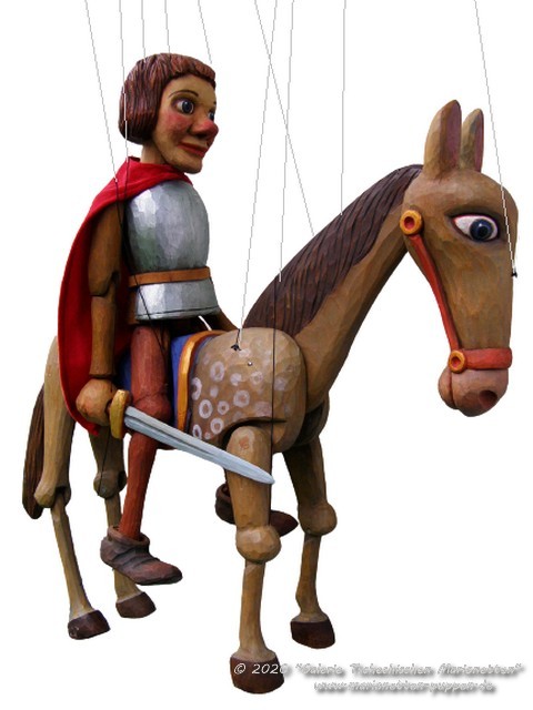 Princ Bajaja sbírková celodřevěná loutka marioneta. Loutka marioneta vypracovaná klasickou řezbářskou technikou z lipového dřeva, konzervovaného včelím voskem a namalovaného transparentně olejovými barvami, takže charakter dřeva je zachován. Má ovládací vahadlo, které umožňuje pohyb na profesionální divadelní úrovni. Nezvyklý dárek nebo odborný herec pro profesionální loutková divadla. Nádherná autorská dřevořezba, exkluzivní dárek.