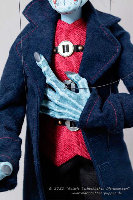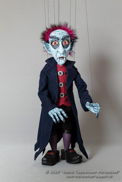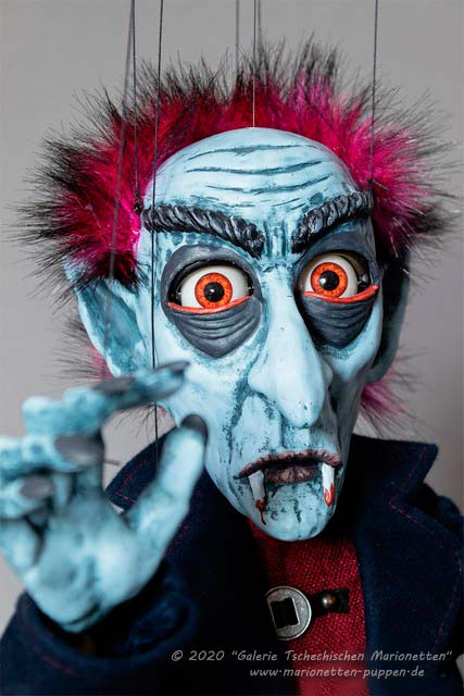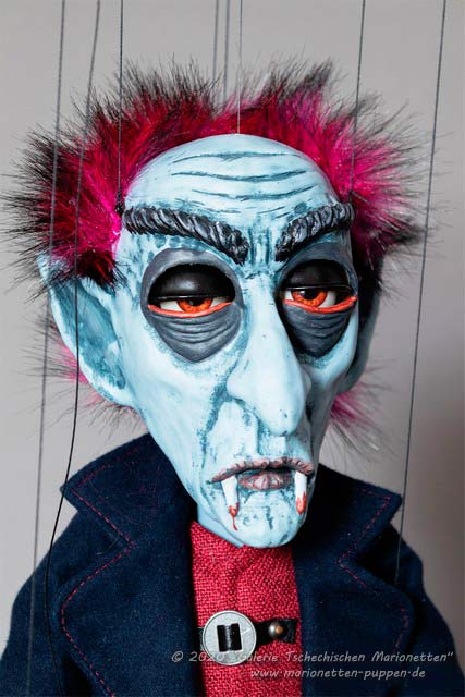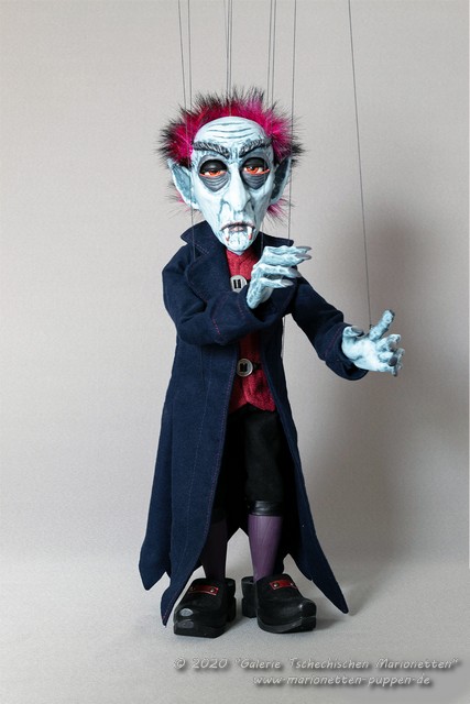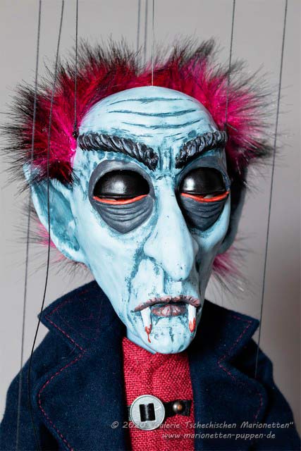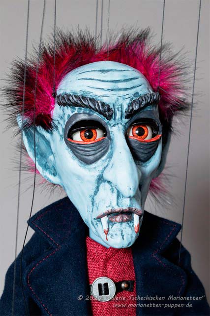 Upír originální česká loutka marioneta s niťovým vedením rukou a vahadlem.