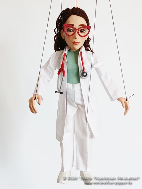 Doktorka Lisa originální česká loutka marioneta s niťovým vedením rukou a vahadlem.