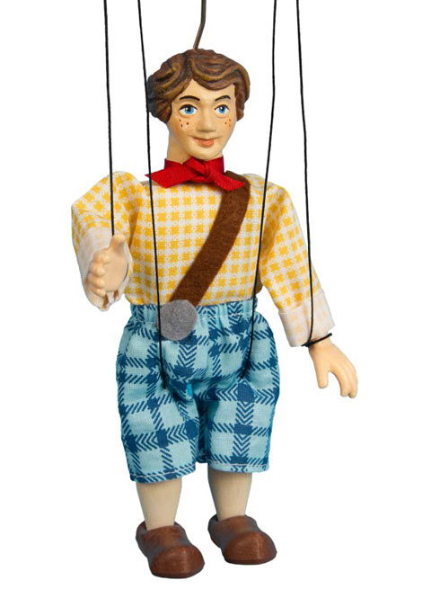 Jeníček klasická loutka marioneta na drátě, vedená systémem Münzbergova válečku. Hlava a končetiny loutky jsou odlévány z modifikací sádry. Další části je dřevěné a spojovací díly jsou vyrobeny z poměděného drátu. Ruční malba loutky je prováděna nezávadnými vodostálými barvami, testovanými pro použití na dětské hračky. Loutka jsou určená jako originální edukativní hračka dětem od 3 let. Nebo jako postavička pro loutkové divadlo a taky však jako jedinečný český suvenýr či hezký dárek.