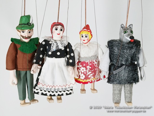 Sada loutek červená Karkulka na drátě: vlk, babička, Karkulka, myslivec